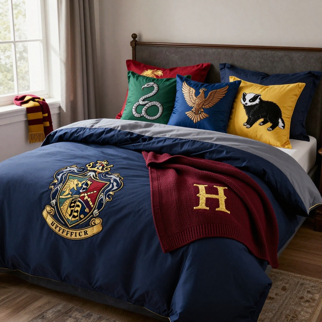 The most popular approach is choosing bedding in your Hogwarts house colors. Gryffindor fans gravitate toward deep crimson and gold, Slytherin devotees choose emerald and silver, Ravenclaws opt for blue and bronze, and Hufflepuffs embrace warm yellow and black. You can find officially licensed duvet covers featuring the Hogwarts crest, house-specific designs, or more subtle patterns that incorporate house colors without being overtly themed — perfect for adults who want the magic without the "kids' room" feel.