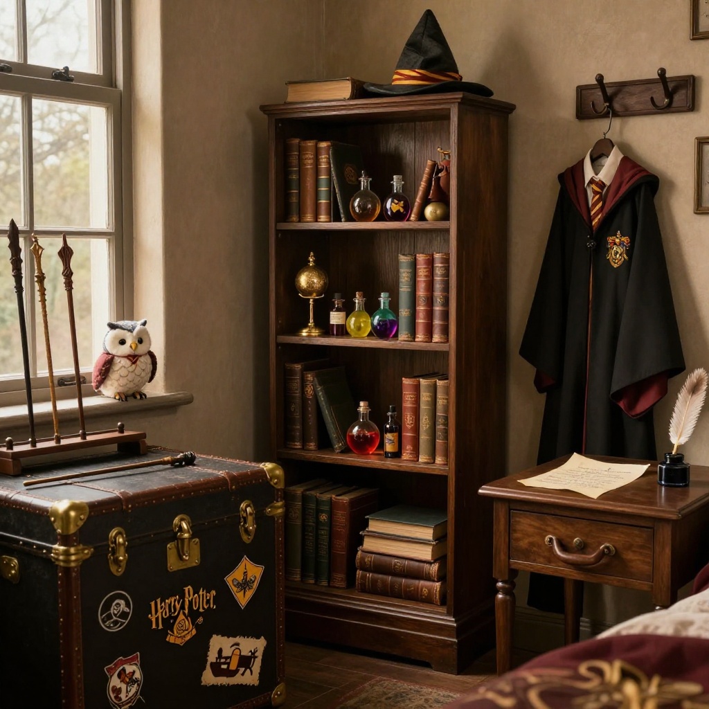 The details are what separate a bedroom with a few Harry Potter items from a fully immersive Wizarding World retreat. These furniture pieces and accessories complete the transformation.